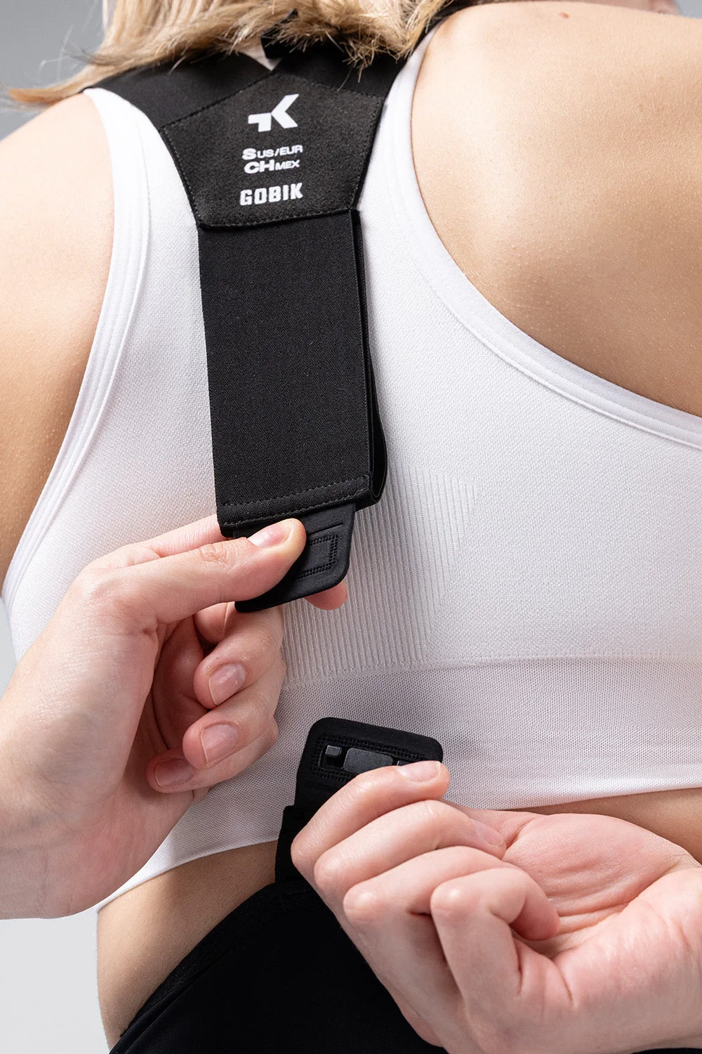 - The ergonomic strap is made with a raw-edge, seamless finish, which significantly enhances the fit. It features a centrally heat-bonded opening that facilitates the release of body heat.
