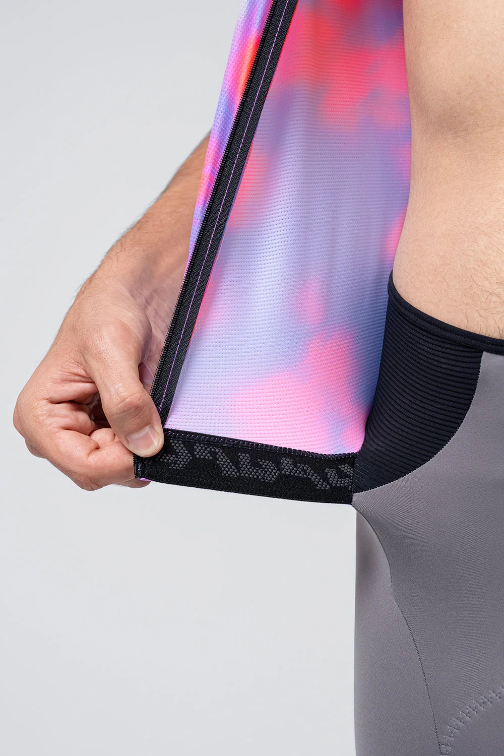 Prianjanje na bedra postiže se čistom, neobrađenom završnom obradom, bez potrebe za šavovima ili unutarnjim silikonskim aplikacijama. Zahvaljujući preciznosti uzorka i visokoj elastičnosti tkanine, zajamčeno je čvrsto i stabilno držanje tijekom pedaliranja, eliminirajući svaki rizik od prekomjerne kompresije, tragova na koži ili nelagode od trenja.