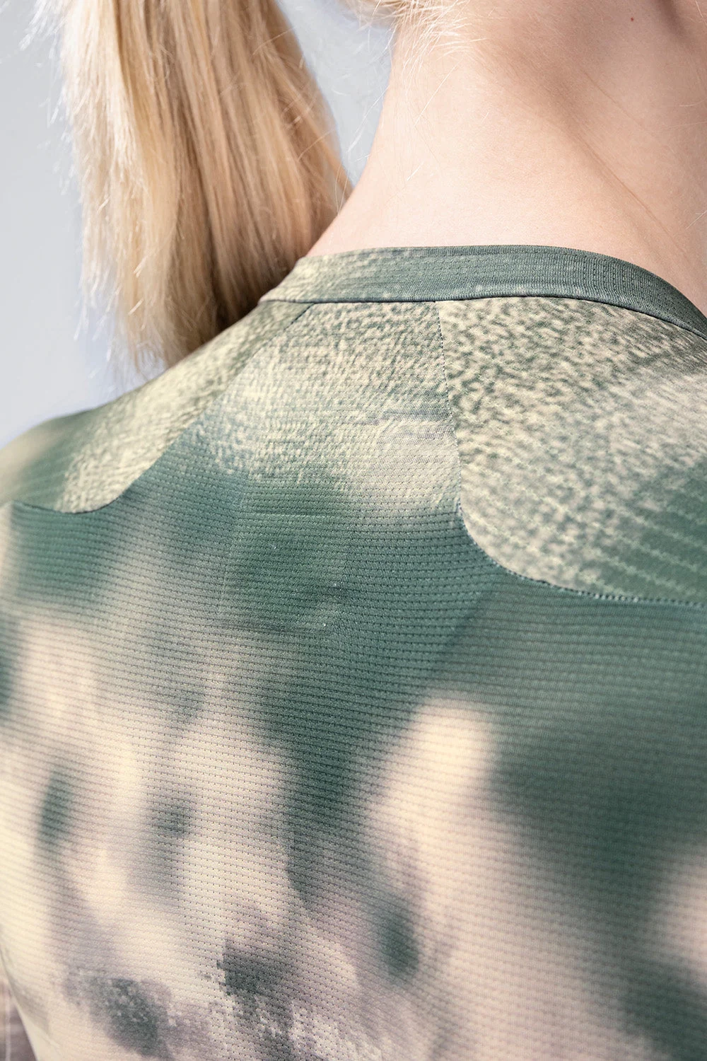 Teksturirane tkanine korištene su na rukavima i leđima, odabrane zbog svoje sposobnosti raspršivanja protoka zraka i poboljšanja aerodinamičkih performansi u pokretu. Ergonomski bešavni rukavi osiguravaju precizno pristajanje obliku ruke, dok njihova produžena duljina dodatno pomaže u smanjenju otpora vjetra.